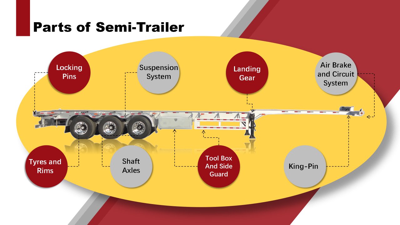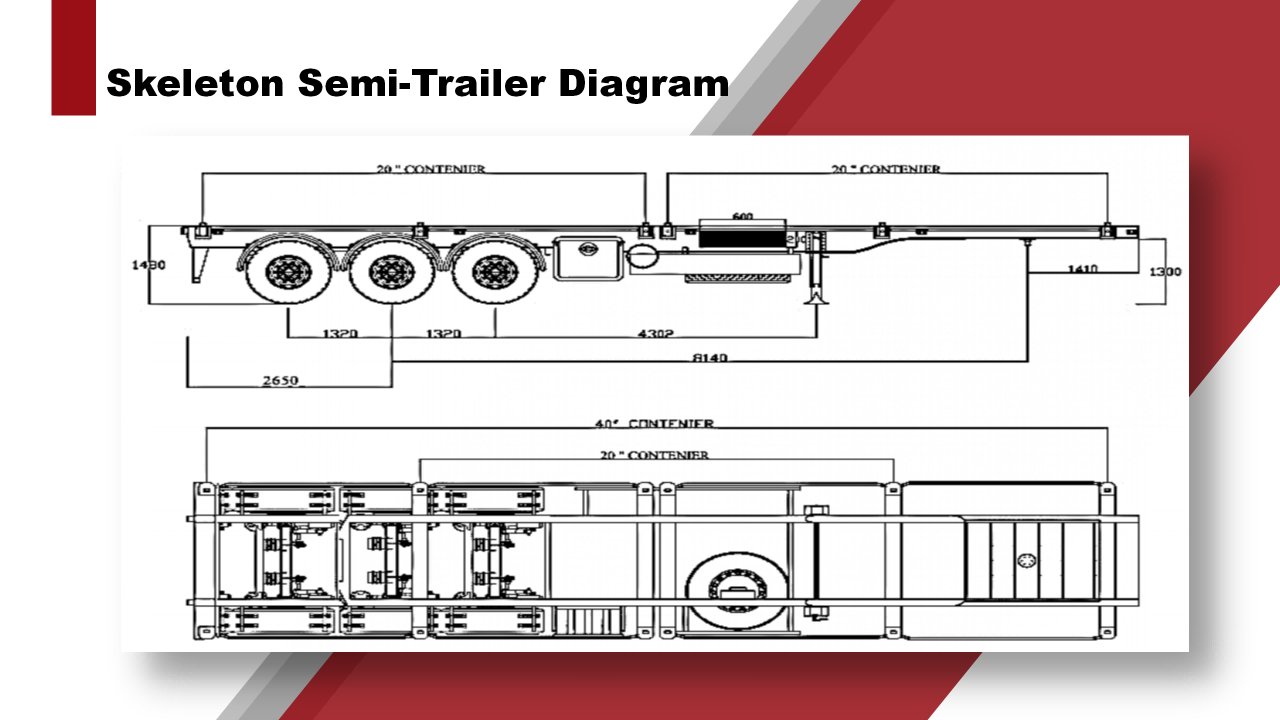 Skeleton Semi-trailer is a most common type of trailers for container transportation (or Container Chassis) which have light weight but heavy capacity, without floor can easy the tank container's discharge. If choose the Gooseneck type, can lower the clearance to get a better delivery quality for the dangerious tank contianer and Vibration sensitive cargos.