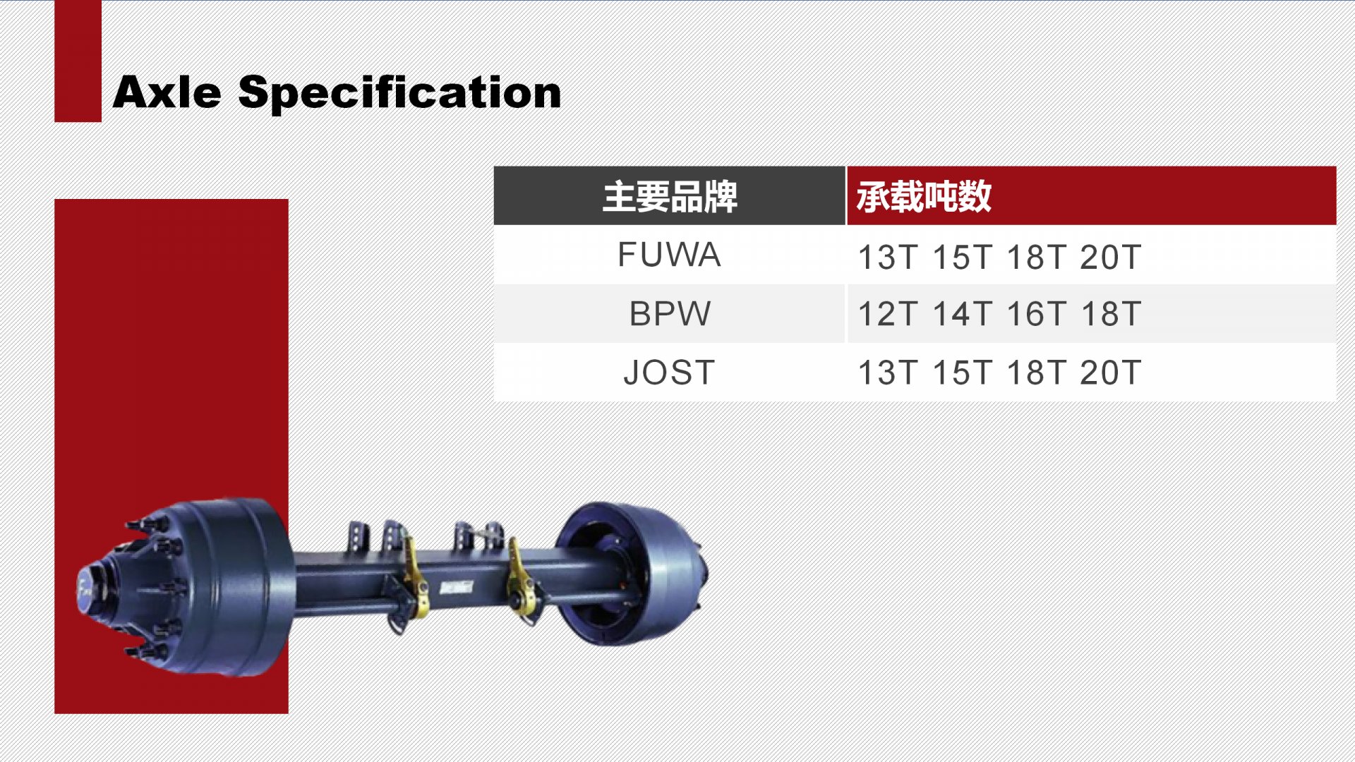 A semi-trailer axle is a central non-powered shaft that connects the wheels of a semi-trailer for rotating. And the axle is connected to the bottom of a body of semi-trailer by the suspension system. And there is a pair of devices braking a wheel through an air valve.