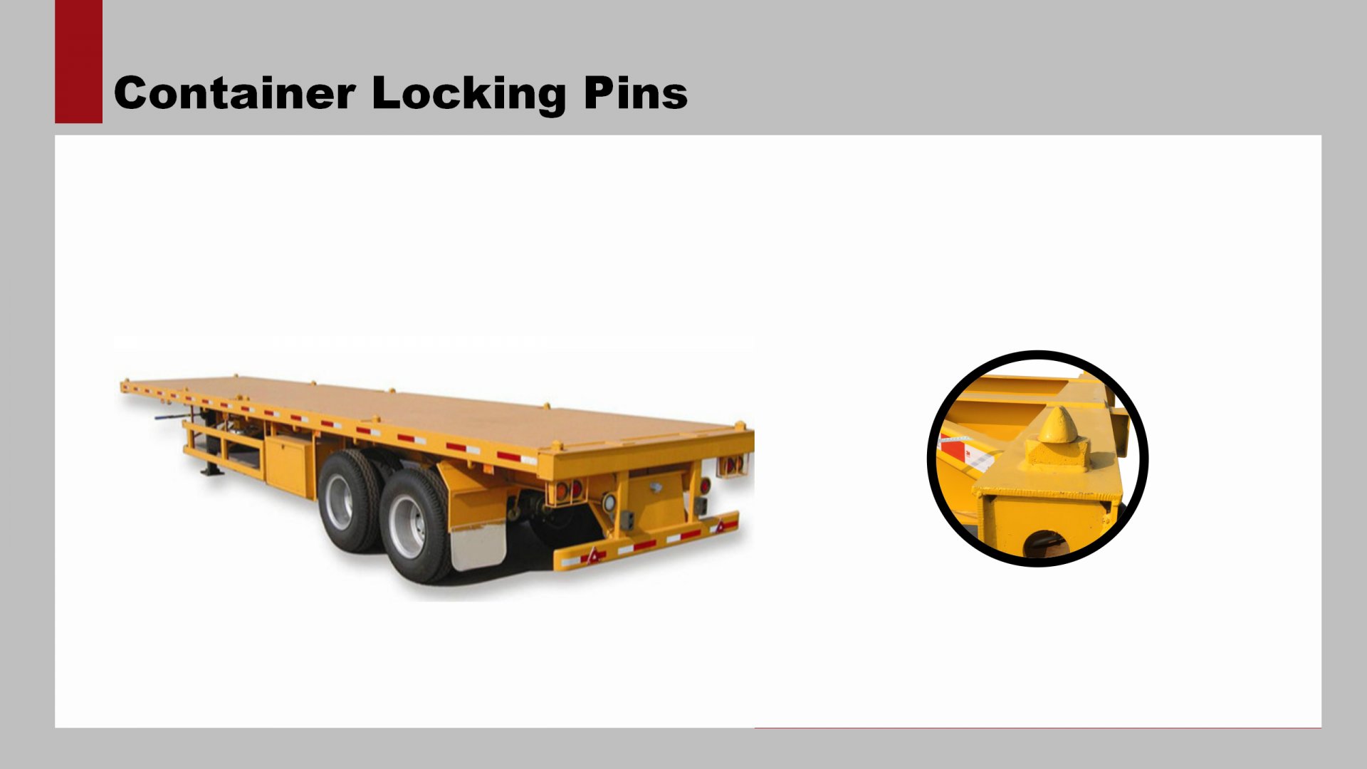 Container locking Pins (twistlock) and corner casting together form a standardized rotating connector for securing shipping containers. The primary uses are for locking a container into place on a container ship, semi-trailer truck or railway container train, and for lifting of the containers by container cranes and sidelifters.